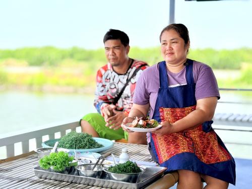 โดยมี นางตวง รักแดง ผู้ใหญ่บ้านขุนสมุทรจีน และผู้ช่วยผู้ใหญ่บ้าน หมู่ที่ 10 ตำบลเเหลมฟ้าผ่า อำเภอพระสมุทรเจดีย์ จังหวัดสมุทรปราการ ให้ข้อมูลอัตลักษณ์ความเป็นไทยและนำเสนอเมนูที่หายไปของตำบลเเหลมฟ้าผ่า อำเภอพระสมุทรเจดีย์ จังหวัดสมุทรปราการ