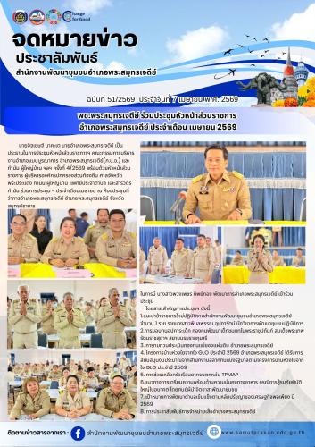 นายอิฐเชษฐ์ นาคะเต นายอำเภอพระสมุทรเจดีย์ เป็นประธานในการประชุมหัวหน้าส่วนราชการฯ คณะกรรมการบริหารงานอำเภอแบบบูรณาการ อำเภอพระสมุทรเจดีย์(ก.บ.อ.) และกำนัน ผู้ใหญ่บ้าน ฯลฯ ครั้งที่ 4/2569 พร้อมด้วยหัวหน้าส่วนราชการ ผู้บริหารองค์กรปกครองส่วนท้องถิ่น ศาลจังหวัดพระประแดง กำนัน ผู้ใหญ่บ้าน แพทย์ประจำตำบล เเละสารวัตรกำนัน ร่วมการประชุม ฯ ประจำเดือนเมษายน ณ ห้องประชุมที่ว่าการอำเภอพระสมุทรเจดีย์ อำเภอพระสมุทรเจดีย์ จังหวัดสมุทรปราการ